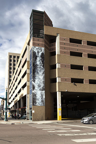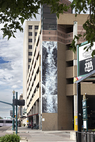 The site specific piece was created for Colorado Springs' annual Art on the Streets public art exhibition. The image was created though a series of digital interventions in photographs taken at the nearby Helen Hunt Falls.