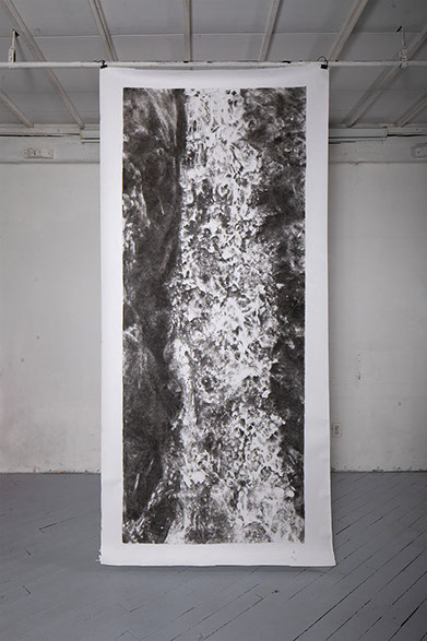 The meltwater drawings come from residencies in the Austrian Alps and the Rocky Mountains and investigate the increasing runoff from Alpine glaciers. The drawings are based on photographs that captured the falling water at 1/2000 of a second.