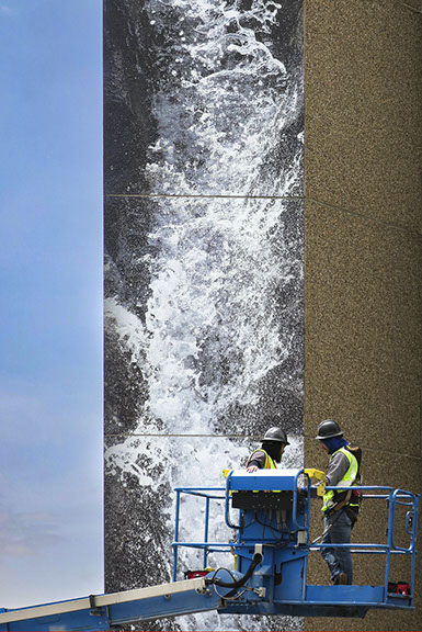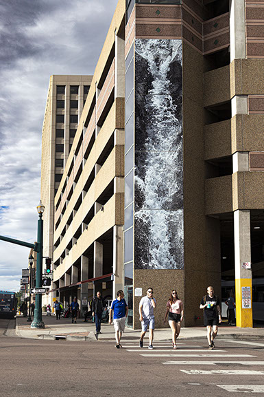 The site specific piece was created for Colorado Springs' annual Art on the Streets public art exhibition. The image was created though a series of digital interventions in photographs taken at the nearby Helen Hunt Falls.