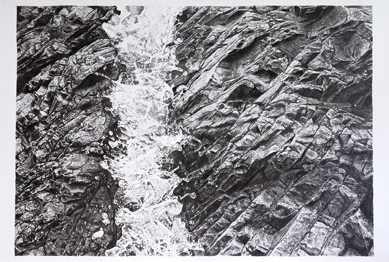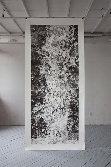 The meltwater drawings come from residencies in the Austrian Alps and the Rocky Mountains and investigate the increasing runoff from Alpine glaciers. The drawings are based on photographs that captured the falling water at 1/2000 of a second.